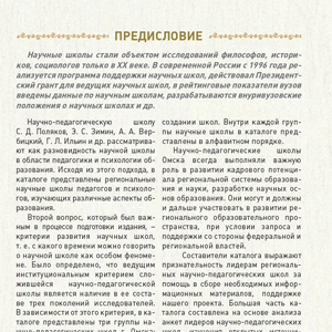 Научно-педагогическую школу С..Д..Поляков, Э..С..Зимин, А..А..Вербицкий, Г..Л..Ильин и другие рассматривают как разновидность научной школы в области педагогики и психологии образования. Исходя из этого подхода, в каталоге представлены региональные научные школы педагогов и психологов, изучающих различные аспекты образования.