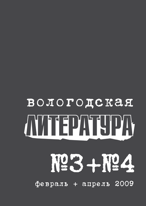 Вологодская литература : журнал отечественной словесности / гл..ред.: А..В..Николаев. — (2008–). — 2009, №'3-4 : февраль-апрель. — [Эл..версия изд.]. — Вологда : Изд. А..В..Николаева и А..С..Халова, 2009 ; [в тип. ПФ «Полиграф-Периодика» (Вологда)]. — 376 с. — 24.0×17.0 см. — [Тираж (печ..изд.): №'3 – 300 экз.; №'4 – 600 экз.].