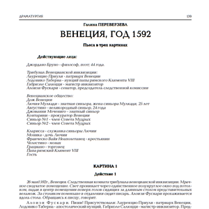 Венеция, год 1592. Пьеса в трёх картинах