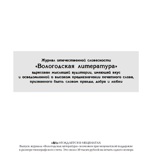 Журнал отечественной словесности «Вологодская литература» (литературно-публицистический журнал) издавался с 2008 по 2011 год. По издательскому плану: четыре выпуска в год; объём журнала – до 400 страниц.