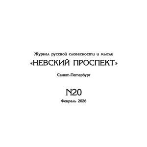 Невский проспект : журнал русской словесности и мысли / гл..ред.: А..В..Николаев. — (2021–). — 2026, №'20 : февраль. — Санкт-Петербург : Изд. А..В..Николаева, 2026 ; [в ПП «Хорошая типография» (Санкт-Петербург)]. — 404 с. — 26.5×17.5 см. — 200 экз.