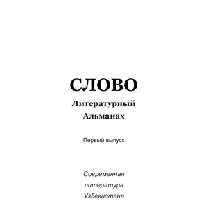 Литературный альманах «Слово» Совета по русской литературе Союза писателей Республики Узбекистан издаётся с 2021 года. По издательскому плану: четыре выпуска в год; объём издания – до 400 страниц. [Электронное периодическое издание : книжный формат].