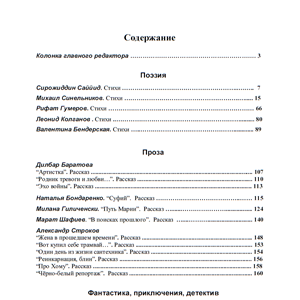 Слово : лит. альманах / Союз писателей Узбекистана ; гл..ред.: Р..Фархади ; редкол.: А..Свистунов, Д..Егорова, Н..Бондаренко, И..Семенюк, А..Наймушин. — (2021–). — 2023. Вып.'7. — [Эл..изд.]. — Ташкент : Совет по рус. лит-ре СП Республики Узбекистан, 2023. — 194 с. : ил., фот. — 28.5×20.5 см [установоч. формат]. — 1.эл..экз. [архив. pdf-файл].